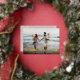 Parfait pour ceux qui vivent dans des climats tropicaux, ou pour partager une photo de vacances en faute, ou des caractéristiques de carte photo de vacances optionnelles "Dashing Through the Sand" comme une feuille d'or superposée avec des illustrations d'étoiles de mer. Personnalisez avec vos noms et salutation personnalisée (spectacle avec "voeux les plus chauds") en bas. Les cartes renversent vers un motif d'étoiles de mer blanc sur le beige du sable.