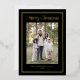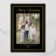 Ajoutez une touche de luxe à vos salutations de vacances avec ce carte photo de vacances doté d'un élégant cadre noir arrière - plan et doré double bordure cadre. "Joyeux Noël" est affiché en feuille dorée brillante au-dessus de votre photo de famille, avec votre nom de famille et votre année imprimée ci-dessous. La palette de couleurs noir et or crée un look moderne mais intemporel, parfait pour une correspondance de Noël élégante. Le dos comprend une photo carré avec espace pour votre message personnalisé.