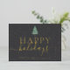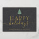 Modern elegant happy holidays Business Logo charcoal gray and gold foil holiday Greeting Card with a stylish Minimalist Watercolor snowy Woodland christmas pine tree with festive lights and whimsical Gold Foil Script