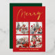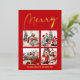 Festive Gold Script MERRY Modern Red 4 Photo Collage Real Foil Carte de vacances. Envoyez des voeux de vacances à vos proches avec cette carte de vacances Foil moderne et festive. Tous les textes sont pré-arrangés pour que vous personnalisiez facilement et rapidement avec vos propres détails. Joyeuses fêtes !