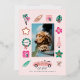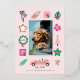 Célébrez la saison des fêtes avec notre carte photo de vacances amusant tropical, festif et coloré. Notre design tropical festif comprend une seule photo au milieu de la carte pour afficher votre propre photo de famille amusante. La photo est encadrée de diverses illustrations tropicales à thème de Noël, dont une convertible rose, une couronne de palmiers, des palmiers aux lumières, un présent, un arc de fleur tropical, etc. aux accents de feuille d'or rose. Les mots fa la la et Let's roll sont affichés sur le rose convertible en feuille d'or rose. Toutes les oeuvres contenues dans cette carte de Noël et de Noël à thème girly et fun sont des oeuvres d'art originales dessinées à la main par Moodthology Papery.