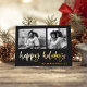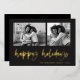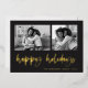 Ce carte photo de vacances simple classique au fusain noir présente une typographie décontractée et moderne en feuille d'or qui dit "happy holiday", avec une grille photo à l'avant pour un design de vacances élégant, moderne et minimaliste.