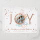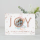 Qui a besoin de flocons de neige quand on a des coquillages ? Capturez une ambiance nautique décontractée et côtière avec notre collection de Noël en papier métallisé inspirée de la côte pour les fêtes de fin d'année. Nous avons peint à la main de magnifiques coquillages à l'aquarelle dans des éclaboussures de bleu côtier, de rose rosé, de blanc sableux, de sarcelle et de nuances pêche pour créer une ambiance côtière sereine et célébrer la saison des fêtes. "Joie" est affiché en papier métallisé rose or et est conçu avec un beau cadre de coquillage côtier autour de la lettre "O" avec un emplacement pour une photo au milieu. Le verso présente un motif rayé nautique bleu côtier gras avec une icône d'ancre blanche. Toutes les illustrations contenues dans notre carte de Noël côtière sont des