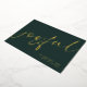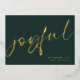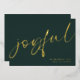 Joyful Elegant Calligraphy Nom Christmas Green Une touche de véritable feuille pour la typographie à l'avant en or, argent ou or rose pour ce design minimaliste. Joyful est dans un script élégant, et personnalisez facilement avec votre nom et votre salut sur le dos.