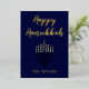 Une carte de vœux charmante pour Hanukka, ce design présente "Joyeux Hanukka" sur un fond bleu charmant. Le centre comporte une menorah avec un espace pour insérer le nom de votre famille en bas. Le dos continue avec le beau fond bleu. Il y a un message de bénédictions inclus. Commandez le vôtre aujourd'hui !