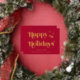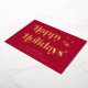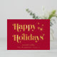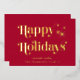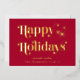 Elégante carte rouge de Noël avec "Happy Holidays" présentée dans la typographie stylée et votre nom dans la typographie serif classique, le tout rendu dans votre choix de véritable feuille d'or ou d'argent.