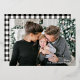 Carte photo est doté d'une élégante feuille d'or rose "Joyeux Noël" de calligraphie superposition design avec texte blanc personnalisé qui peut être personnalisée avec votre(s) nom(s), l'année, et une photo de style paysage préféré. Le dos de la carte comprend un motif plaid à la fois tendance et classique, noir et blanc. Crédit photo : Sunbeam Photography www.facebook.com/SunbeamPhotography
