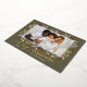 La carte de vacances "Joyeux Noël" présente un design de feuilles de verdure fleurie et de baies avec un élégant texte de salut et cadre en or réel moderne autour de l'image. Personnalisez le texte simple avec une signature familiale et l'année, et choisissez d'inclure un message supplémentaire au verso de la carte. Deux autres espaces photo sont également inclus au dos. Comprend une couleur arrière - plan vert olive foncé sur le devant.