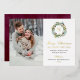 Cette élégante carte de vacances Joyeux Noël et Joyeux Nouvel An comporte une photo portrait à côté d'une belle aquarelle fleurie couronne de verdure d'hiver avec un monogramme personnalisé en feuille d'or initial. Le texte élégant comprend le texte "Notre nouvelle maison pour les fêtes" ainsi que votre nouvelle adresse. Un arrière - plan coordonné de style aquarelle bordeaux / vin rouge habille le dos de la carte.
