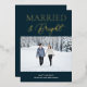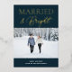 Married Bright Blue Gold Script Photo moderne Script de Noël Real Foil Carte de vacances. Envoyez des voeux de vacances avec des photos à vos proches avec cette carte de vacances Foil moderne et festive. Tous les textes sont pré-arrangés pour que vous personnalisiez facilement et rapidement avec vos propres détails. Joyeuses fêtes !
