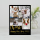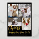 Santé! Célébrez une joyeuse nouvelle année 2024 avec notre carte de voeux Modern Simple minimaliste 5 Photos avec une joyeuse nouvelle année écrite dans un script de brosse moderne! Ce n'est pas seulement une carte ; c'est une mini galerie de vos moments de famille préférés dans un papier peint noir et or réel modifiable.