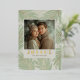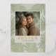 Ajoutez une touche de charme tropical à vos salutations de vacances avec cette carte de Noël en feuille personnalisée avec une fronde de palmier vert pastel. Cette carte élégante est parfaite pour envoyer des souhaits chaleureux à des amis et à la famille, et le design personnalisable vous permet d'ajouter une touche personnelle avec votre propre message et une photo spéciale.