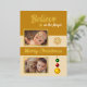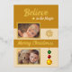 Véritable carte de vacances en papier. Joyeux Noël. Ajoutez votre photo et vos noms, ou votre nom de famille au dos. Crois en la magie. 'Tout le meilleur pour le Nouvel An' est au verso de la carte. Conçu en or clair et foncé avec des billes et des étoiles d'or.