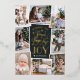 Belle typographie à base de carte photo de vacances dispose de huit de vos photos de famille préférées disposées dans un montage. "Souhaitez-vous la paix, l'amour et la joie" apparaît dans le centre en feuille d'or typographie lettrée à la main sur un riche arrière - plan noir au charbon de bois, parsemé d'étoiles festives. Personnalisez avec votre nom de famille en-dessous.