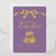 Celebrate the joy of the season with this personalized gold foil Happy Easter card. Featuring elegant gold foil lettering, a delicate ribbon bow design, and a charming Easter egg, this card is printed on a vintage lavender purple background for a timeless spring look. Personalize the front with your family name or greeting, and add a heartfelt message on the back to create a meaningful keepsake your loved ones will cherish. The real gold foil detailing adds a luxurious touch, making this card perfect for those who appreciate classic elegance with a modern feel. Ideal for sending warm Easter wishes, this sophisticated non-photo Easter card is a beautiful way to share springtime joy with friends and family.