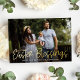 Carte photo de Pâques mignon avec "Bénédictions de Pâques" affiché dans une feuille d'or manuscrite superposition de script. Personnalisez l'avant de la carte de Pâques en feuille d'or avec votre photo horizontale, votre accueil personnalisé et votre nom de famille. La simple carte de Pâques inverse pour afficher un arrière - plan rose solide avec de l'espace pour des photos et du texte supplémentaires.
