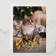 Carte de vacances pour chat moderne avec la photo verticale de votre chat avec "Meowy and Bright" dans une superposition de script en feuille d'or écrit à la main. Personnalisez l'avant de la carte de vacances en feuille d'or en ajoutant votre nom. La carte de vacances photo chat revient pour mettre en vedette un simple motif étoilé rouge et blanc.