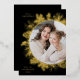 Elégante carte de vacances en feuille avec votre photo encerclée de pinecones en feuille d'or, pics de pin, et feuillage d'hiver avec un arrière - plan noir. Le carte photo de vacances botanique vous propose votre accueil de vacances personnalisé, nom de famille, et l'année en feuille d'or. Ajoutez votre message personnalisé au dos de la carte ou laissez vide.