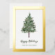 Cette carte de vacances minimaliste présente une typographie de script moderne avec un emplacement pour votre nom. Un sapin de Noël en pin aquarelle simple et élégant apporte une touche de design et de fête qui est également assez professionnelle pour tout salut d'affaires. Une élégante et véritable bordure en feuille d'or ajoute un style luxueux.