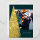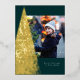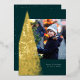 Avec un arbre de Noël moderne de flocons d'or sur un riche arrière - plan vert foncé, ce carte photo unique est la meilleure façon d'envoyer des voeux de vacances. Le message est personnalisable, tout comme la couleur arrière - plan. C'est une carte de vacances unique pour les familles, les couples ou toute personne au goût sophistiqué. Le support de coordination est un vert classique assorti aux taches blanches.
