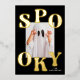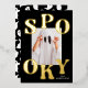 Envoyez des salutations d'Halloween éffrayantes à vos amis et votre famille avec ce carte photo d'Halloween d'inspiration rétro. Le design minimaliste présente votre photo verticale au centre, encadrée par "Éffrayant" dans une typographie rétro chatoyante en feuille d'or. Personnalisez le devant avec votre nom ou votre texte personnalisé. La carte revient à un amusant motif fantôme noir et blanc, créant une façon festive et élégante de partager vos souvenirs d'Halloween.