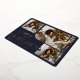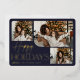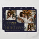 Notre design festif et élégant de cartes de vacances est la façon parfaite de montrer trois de vos photos de famille préférées. Le design horizontal ou paysager présente des "Joyeuses fêtes" en typographie de feuille d'or brillante et écriture manuscrite, avec votre nom de famille sous un arrière - plan bleu marine.