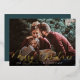 Elégante carte photo de Noël dispose d'une seule photo horizontale ou paysagère avec "Joyeux Noël" superposé dans le script de calligraphie en feuille d'or. Personnalisez avec votre nom de famille ou votre nom individuel et l'année en dessous en lettres blanches modernes. Un choix simple et chic pour vos salutations de vacances.