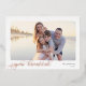 Un carte photo Hanoukka élégant et sobre encadre une seule photo horizontale ou orientée paysage avec une bordure ondulée de bord, sur un arrière - plan blanc immaculé. "Joyous Hanoukka" apparaît en bas à gauche dans le script de calligraphie de feuille d'or rose moderne, avec votre nom de famille et l'année à droite. Un choix simple et chic pour vos salutations Hanoukka 2022.