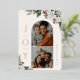 JOIE au monde, blanc hiver fleuri et verdure, Arche de vacances et cadre carré 2 carte photo. Caractéristiques, support couleur rouge solide avec espace modèle pour votre message de vacances personnel.