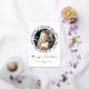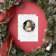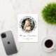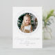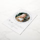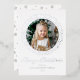 Elégante carte de vacances avec votre photo entourée d'une couronne de flocons d'argent et de branches de pin sur un arrière - plan blanc. "Joyeux Noël" est affiché dans un script de calligraphie en feuille d'argent avec votre nom et l'année ci-dessous. Le dos de la carte de vacances moderne dispose d'un beau motif de flocon gris non-feuille.