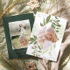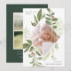 Élégante carte de vœux pour photos verticales présentant votre photo entourée d'une bordure géométrique de feuillage botanique vert luxuriant et de petites baies de houx rouge aquarelle. "Le ciel et la nature chantent" apparaît en haut à gauche en lettres grises, avec le nom de votre famille en bas à droite. Personnalisez le verso avec deux photos supplémentaires et un message personnel.