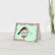 Carte de vœux pour les amateurs de pilates, de yoga ou de fitness montrant une silhouette se penchant en arrière sur un grand ornement comme s'il s'agissait d'un ballon de fitness ! Le texte à l'intérieur indique "Passez de joyeuses fêtes équilibrées et en bonne santé"
