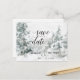 Cette belle carte postale "save the date" à motif de forêt à l'aquarelle verte et blanche représente une forêt de conifères enneigée sur fond blanc brillant. La phrase "save our date" est créée avec une police cursive de style lettrage à la main et tous les détails sont écrits en noir. Vous pouvez personnaliser cette carte "save the date" avec tous vos détails importants. Le verso comporte plus de détails et un espace pour que vous puissiez indiquer l'adresse de la carte postale. Cette carte "save the date" est coordonnée avec les autres produits de la collection "Winter Wonderland Wedding".