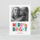 Célébrez les fêtes avec cette carte de vœux photo moderne et minimaliste avec un design simple et une typographie en gras colorée "joyeuse et lumineuse" !