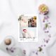Carte de vacances avec "joyeux" dans un script élégant avec une véritable feuille métallique. Options de feuille métallique Argent, Or ou Or Rose. Personnalisez avec votre photo et le nom de votre famille.