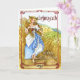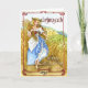 Illustration d'A Maiden habillé en tenue Renaissance, dans un champ de blé tenant le premier de la récolte de blé et de maïs. Une bénédiction pour la première récolte à l'intérieur de la carte.