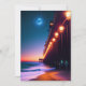 Une belle carte de voeux pour les amateurs de plage dispose d'une jetée avec des lampadaires éclairés et une pleine lune brillante à la tombée de la nuit. Conception créée à l'aide d'un logiciel AI. Texte "penser à vous" personnalisable
