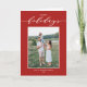 Joyeuses Fêtes ! Envoyez vos vœux de fin d'année à vos proches avec cette carte de vœux moderne personnalisable. Elle présente une écriture élégante et une typographie simple. Personnalisez cette carte de vœux photo en ajoutant des noms et une photo. Cette carte de vœux rouge est disponible sur d'autres papiers et couleurs.