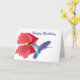 Cette belle carte de voeux modifiable présente ma peinture d'un colibri bleu et vert en vol se nourrissant d'un Hibiscus rouge contre un arrière - plan blanc clair. Joli à l'équipe avec des barres de bonbons assorties comme cadeau parfait.