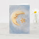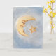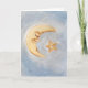 Carte de voeux sucrée faite sur mesure pour envoyer des sentiments de Fête des mères ou de nouvelles félicitations pour bébé. Carte représentant une belle aquarelle illustrant un croissant de lune souriant à une petite étoile. Vide à l'intérieur.