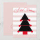 Changez vos souhaits de Noël avec ce design moderne rayé de Noël. Toujours en utilisant les couleurs saisonnières traditionnelles, ce design utilise le rose, le noir et le rouge. L'arbre noir est orné de décorations rouges. Rose, Noir et Rouge. Il y a de la place pour votre message de vacances sur le dos avec le mot 'Amour' qui peut être supprimé si vous ne voulez pas l'utiliser. Salutation de Noël moderne et simple.