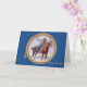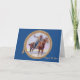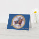 C.M. Russell Impression de cowboy sur un cheval tenant un verre dans l'air. Le texte "voici pour vous peut être customisé à dire quelque chose de différent si vous voulez. Le texte personnalisé peut également être ajouté à l'intérieur de la carte à l'aide de la fonction de conception située sur le côté droit.