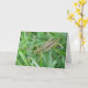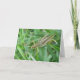 Cette carte d'anniversaire personnalisable présente une photo macro détaillée d'une petite sauterelle verte avec des marquages marron en marbre assis sur l'herbe. Sur la photo vous pouvez voir le détail des jambes articulées, des antennes longues et des yeux noirs et or de la sauterelle. Le texte vert à l'intérieur de la carte dit, "Hoppy Birthday to you". Le texte est personnalisable pour que vous puissiez le modifier, y ajouter un nom ou le supprimer pour laisser vide l'intérieur de la carte.