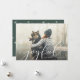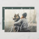 Cette carte de vœux photo présente le mot "joyeuse" dans une écriture blanche élégante et moderne au premier plan et votre photo en arrière-plan. Le verso présente un motif de flocons de neige vert foncé et blanc.