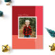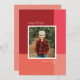 Un design épuré et moderne avec un fond à blocs de couleur en rouge, rose et corail et une seule photo. Une police de caractères de style manuscrit complète une police simple pour le nom de famille. Changez le message et la couleur au verso pour les vôtres !