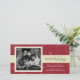 Le design contemporain de cette carte photo est approprié pour n'importe quelle fête, qu'il s'agisse de Noël, de Hanouka ou de Kwanzaa. Le fond rouge cramoisi avec des flocons de neige graphiques et des volutes donne une touche moderne à votre message de fête principal écrit sur un ruban de couleur crème. Personnalisez avec votre propre message et photographie. Disponible en couleurs alternatives avec des produits assortis.
