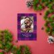 Élégant motif à carreaux violet simple avec photo de famille et accents de feuille d'or rose. Personnalisez avec votre propre nom et message.