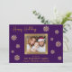 Partagez la joie de Noël avec cette superbe carte de vœux familiale. Le fond violet foncé est magnifiquement rehaussé de délicats flocons de neige dorés, créant un design festif et sophistiqué. Votre précieuse photo de famille est mise en valeur, encadrée par une bordure dorée étincelante, créant un point de mire qui irradie de chaleur et d'amour. Personnalisez la carte avec le nom de votre famille et les noms de chaque membre pour la rendre unique. L'intérieur de la carte comporte un message de Noël sincère en lettrage doré élégant, adressant des vœux chaleureux pour une période des fêtes remplie de bonheur et de gaieté. Cette carte plate personnalisable est un moyen idéal de se connecter avec les proches pendant la période la plus merveilleuse de l'année.