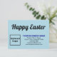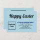 Carte de voeux bleue claire pour Pâques que vous pouvez customiser en téléchargeant votre logo d'entreprise, en tapant votre nom d'entreprise, adresse, numéro de téléphone et site Web. Customisez-le et donnez-le à vos clients ou clients pour les saluer cette Pâques. Carte de voeux plate comme matériel de marketing aussi pour annoncer votre entreprise ou pour promouvoir votre marque. Carte de voeux personnalisable que vous pouvez utiliser pour sensibiliser la marque. Veuillez vérifier l'apparence des côtés avant et arrière après avoir téléchargé le logo et tapé des textes. Si l'apparence vous plaît, vous pouvez passer votre commande maintenant. Si vous avez besoin de redimensionner et repositionner le logo et les textes pour les mettre sur cette carte ou sur la taille que vous avez choisie, s'il vous plaît ajuster dans l'outil de conception. Vous pouvez également modifier la couleur arrière - plan, la couleur de police et le style de police dans l'outil de conception. Joyeux Pâques ! Je vous souhaite plus de ventes ce jour férié.