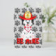 Ce petit chien veut être votre Valentin. Le cœur sur son collier indique “Je t'aime” et il est assis sur de grosses lettres qui épellent BE MINE. Le fond est un motif d'empreintes de pattes grises. Au dos, il y a un espace pour ajouter du texte.